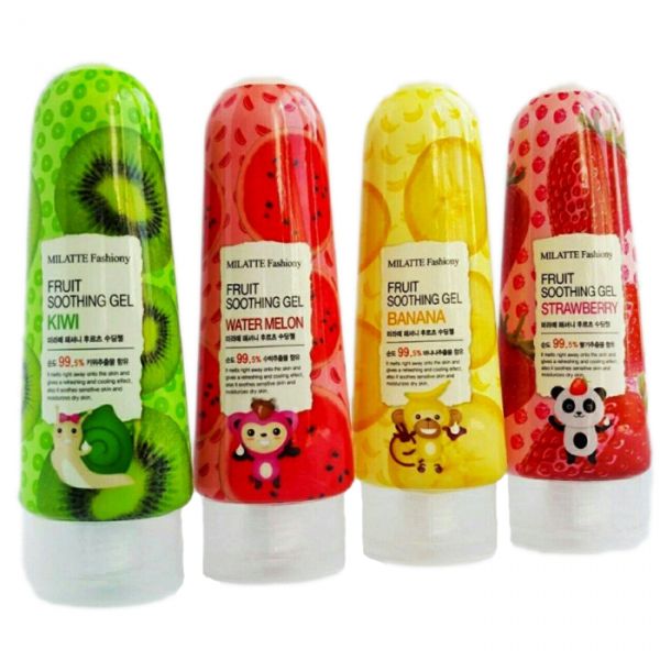 Гель для тела Fashiony Fruit Soothing Gel от бренда Milatte многофункционален в применении и подходит для ежедневного применения на всём теле. Его можно использовать как увлажняющий крем для лица, а также как базу под макияж. Не менее полезен будет гель в качестве успокаивающего средства после длительного пребывания на солнце, депиляции и укусов насекомых.