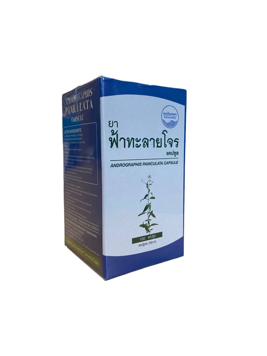 Капсулы Фа Талай Джон (Fah Talai Jone) - это натуральный фитопрепарат на основе Андрографиса метельчатого (Andrographis paniculata) для лечения простудных и легочных заболеваний. Это средство широко применяются в народной тайской медицине для лечения простуды, гриппа, ангины, воспалительных заболеваний дыхательных путей (ларингит, синусит, фарингит, тонзиллит, бронхит), при бронхиальной астме. Оно способствует облегчению кашля, разжижает мокроту, устраняет сухость в горле, уменьшает заложенность носа, оказывает жаропонижающее действие.