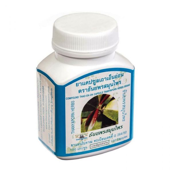 Тайские капсулы Тао-Эн-Он (Thao En On) - это натуральный фитопрепарат на основе растения Криптолепис (Cryptolepis buchanani) для облегчения мышечной боли и лечения суставных заболеваний, в том числе и для лечения межпозвоночной грыжи. Действие этого средства направлено на снятие воспаления в суставе, благодаря особым ферментам и босвеливоей кислоте. Препарат обладает мощным противовоспалительным действием, укрепляет и восстанавливает стенки сосудов, уменьшает воспаления при артрите, артрозе, хондрозах и подагре, улучшает подвижность суставов и уменьшает боль, способствует рассасыванию межпозвоночной грыжи. Улучшает приток крови к артериям, снижает мышечное напряжение и усталость, смягчает сухожилия, применяется при деформации и жесткости связок.