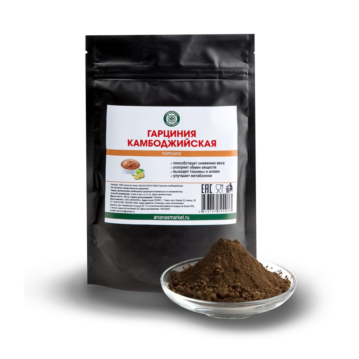 Состав: 100% молотые плоды Гарци́ния камбоджи́йская (Garcīnia Gūmmi-Gūtta)