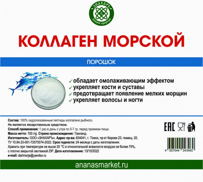 Состав: 100% коллаген рыбный гидролизованный (пептиды).