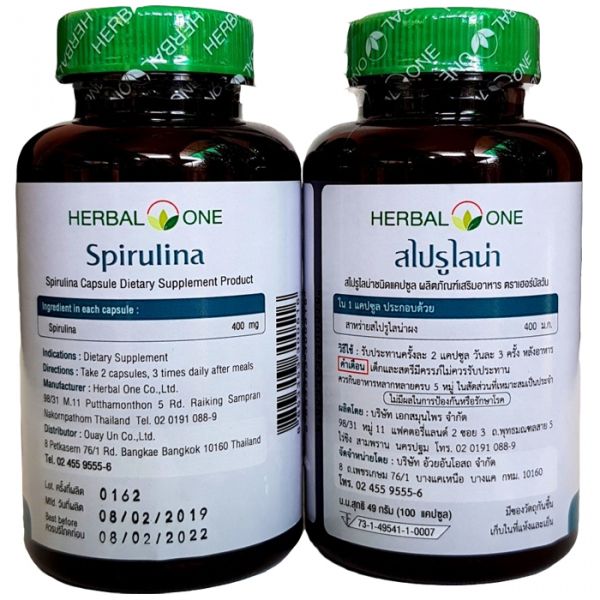 Тайские капсулы Спирулина (Spirulina) - это натуральный фитопрепарат созданный на основе сине-зелёной водоросли Спирулины (Spirulina) которая содержит уникальный природный комплекс витаминов, минералов и аминокислот. Капсулы содержат абсолютно все вещества, которые необходимы человеку для жизни, причём они усваиваются организмом значительно легче, чем аналогичные вещества в других продуктах. В капсулах сосредоточено более 2000 витаминов, минералов, незаменимых для организма человека растительных ферментов и жирных аминокислот.