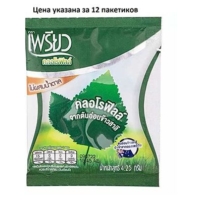 Тайский питьевой хлорофилл без добавок и примесей в порошке для здоровья всей семьи, 12 шт. Тайский хлорофилл выделен из листьев японской Mulberry (шелковица). Представляет собой растворимы порошок, 100% натуральный. Не содержит консервантов, красителей, сахара и других веществ.