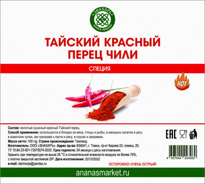 Состав: молотый сушеный красный перец.