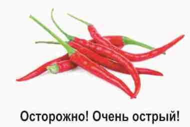 Осторожно! Очень острый! При использовании перца будьте осторожны: старайтесь не вдыхать, не касаться области глаз, обязательно тщательно помойте руки после контакта с Чили.