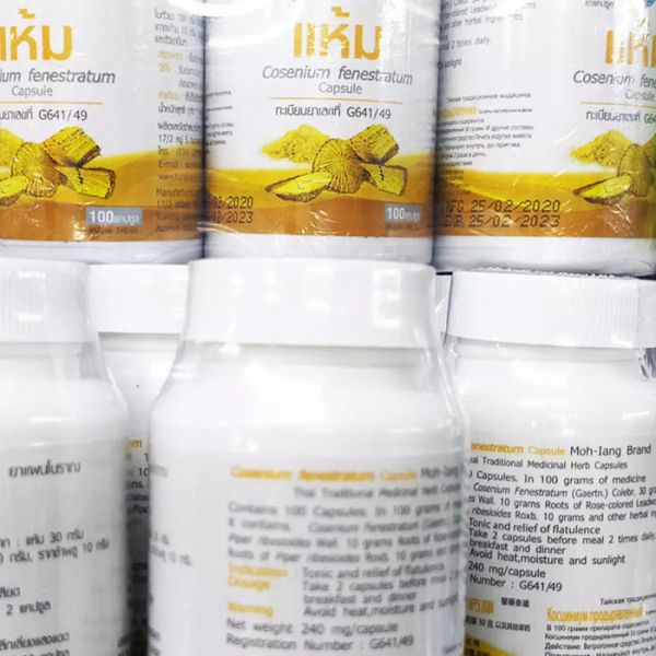 Капсулы Хаам (Косциниум продырявленный) – это полностью натуральный препарат, состоящий из измельченных частей растения Древесная желтая гладкая лиана (Cosenium Fenestratum, Arcangelisia flava, Kaminkrua capsule).